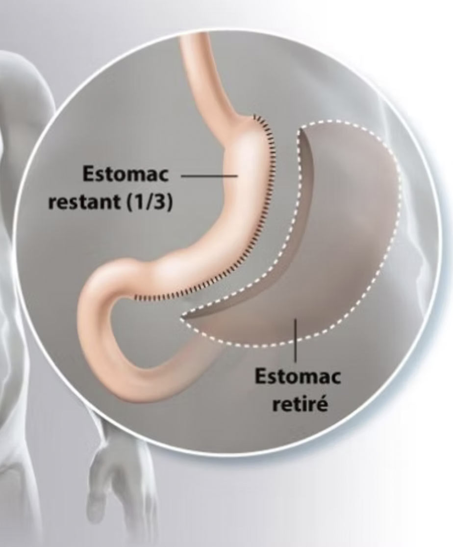 Elle consiste à retirer environ les 2/3 de l’estomac et, notamment, la partie contenant les cellules qui sécrètent l’hormone stimulant l’appétit.